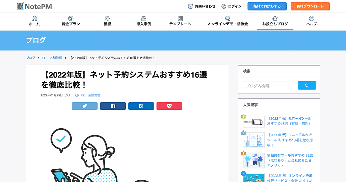 マニュアル作成・ナレッジ共有ツール「NotePM」さんのブログ記事「【2022年版】ネット予約システムおすすめ16選を徹底比較!」にて、オンラインレッスン予約システム「WTE」を取り上げていただきました。