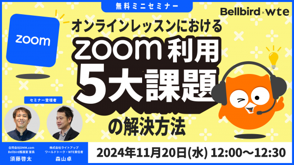 敬司、以下DMM)で展開中の「DMM英会話」が運営するオンラインコミュニケーションに関するOEMサービス「Bellbird」と共に、オンラインレッスン事業者向けのオンラインセミナーを開催いたします。